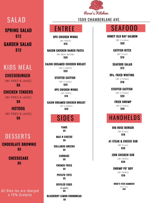 Looking for a comforting meal that feels like home? Rose's Kitchen Menu is the perfect place to satisfy your cravings. Located at 1509 Chamberlayne Ave in Richmond, VA, this cozy spot offers a variety of dishes that are sure to hit the spot, whether you're in the mood for something hearty or light. From savory southern classics to modern twists on old favorites, there's something for everyone. Each dish is prepared with fresh ingredients and a whole lot of love, making every bite an experience. Whether you're stopping by for a quick bite or settling in for a full meal, Rose's Kitchen is here to make you feel right at home. The menu is full of options that cater to all kinds of tastes and preferences, so you'll always find something that feels just right.